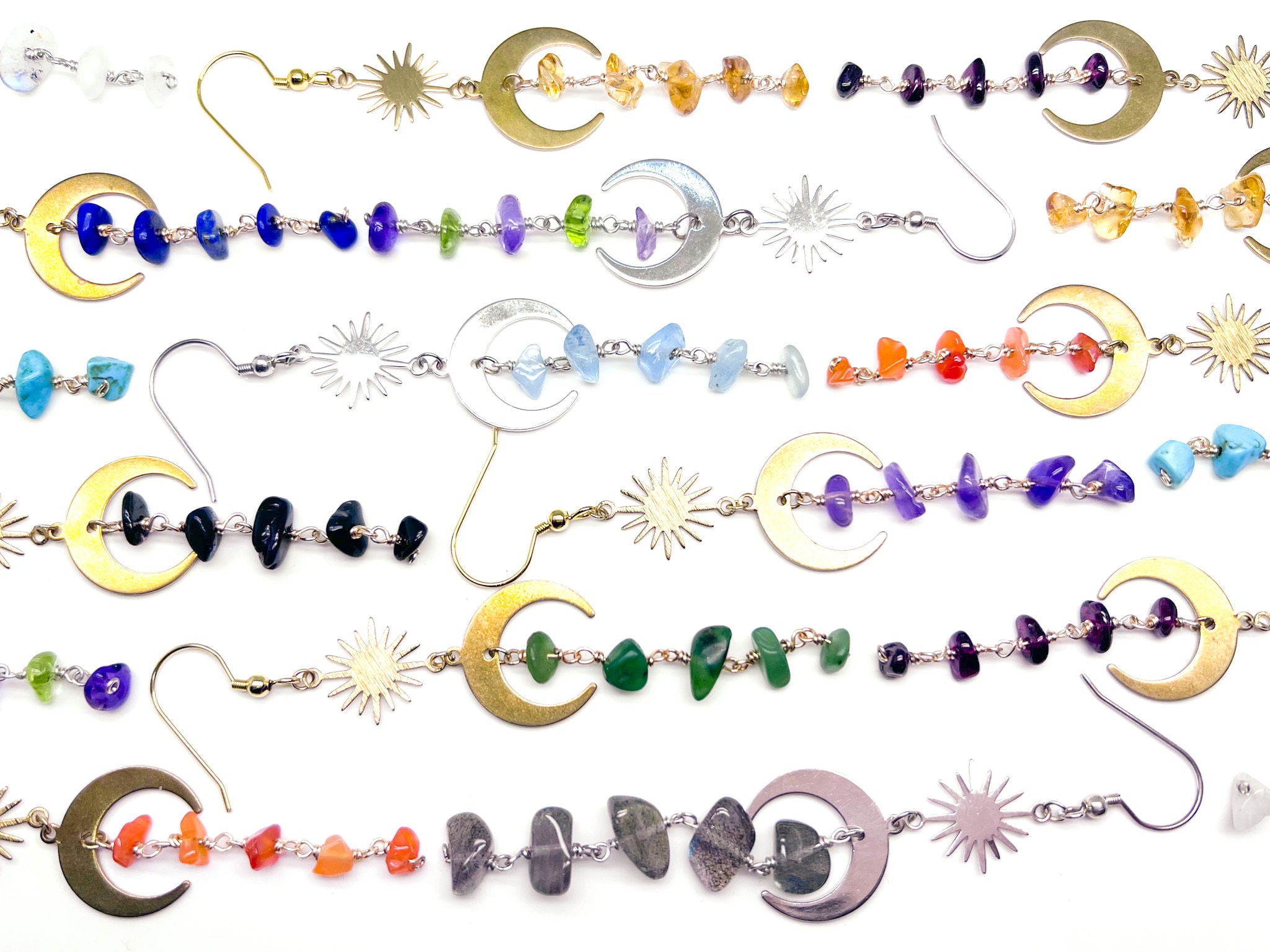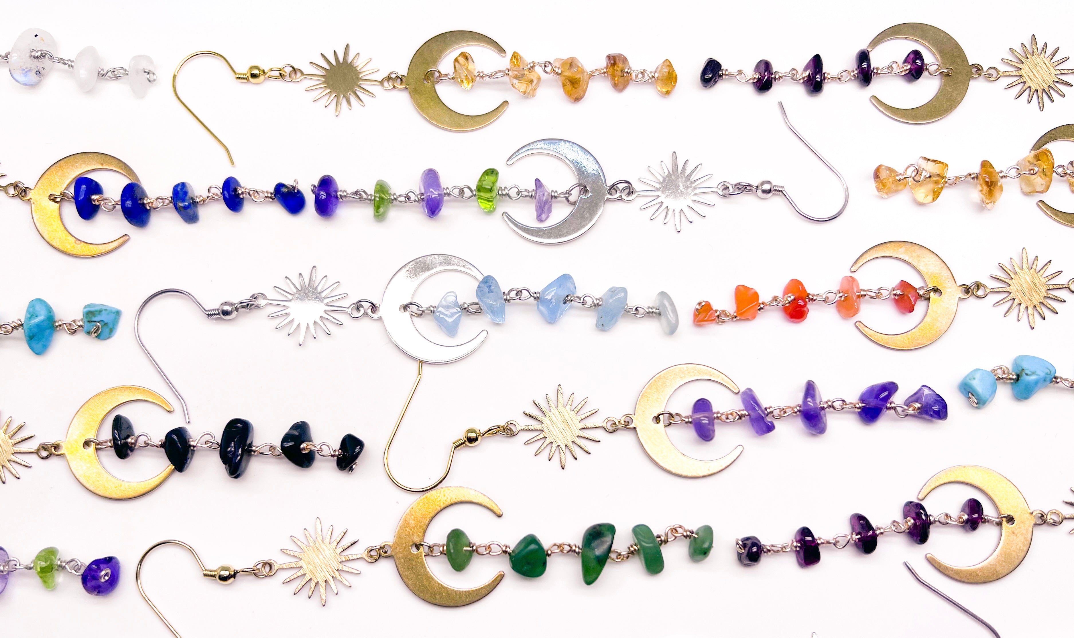 Discover celestial beauty with our hand crafted moon and star earrings.