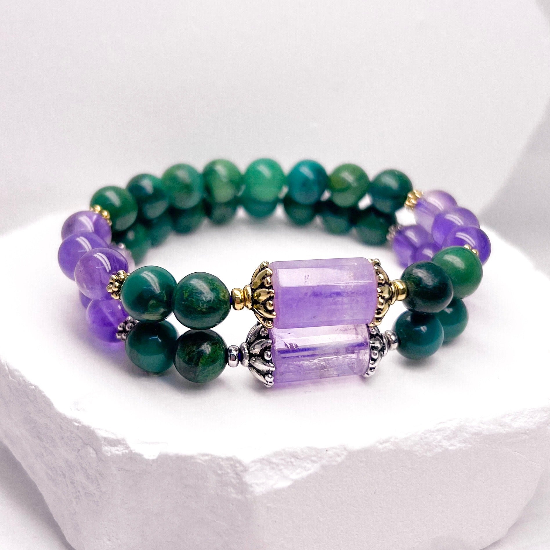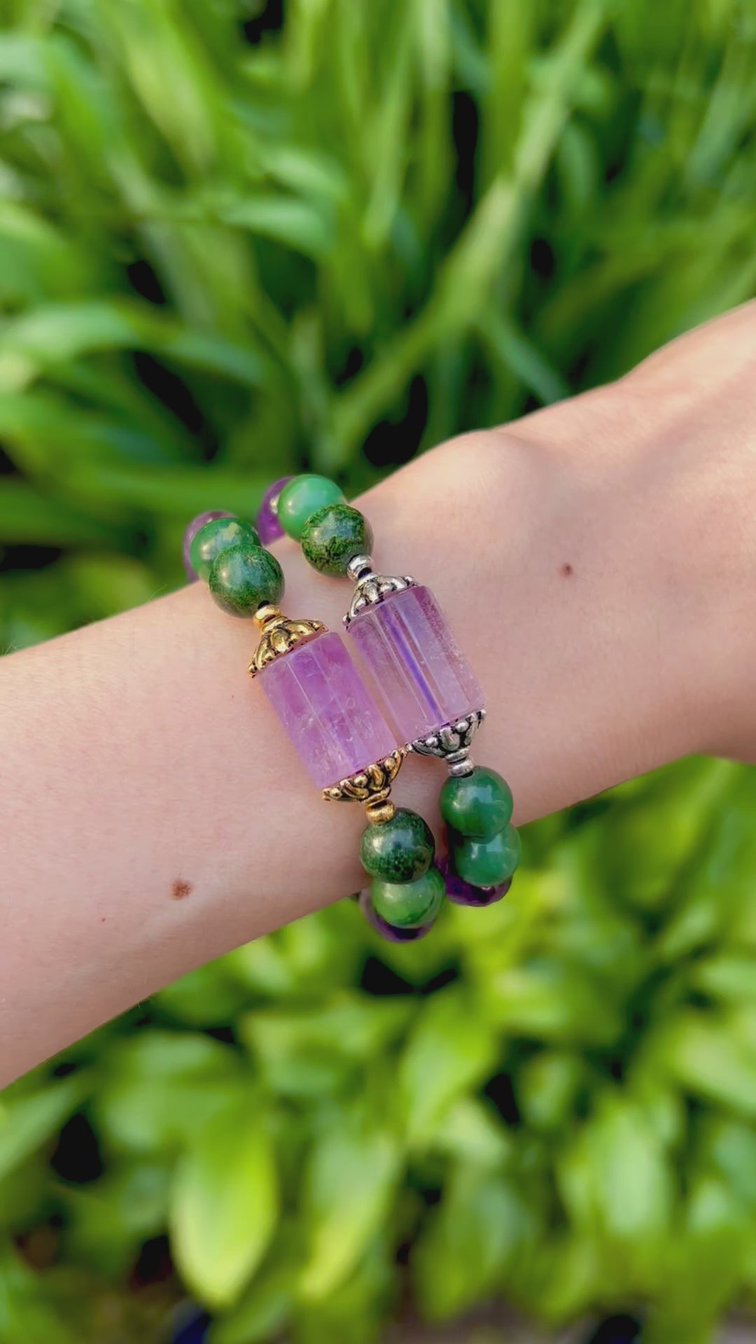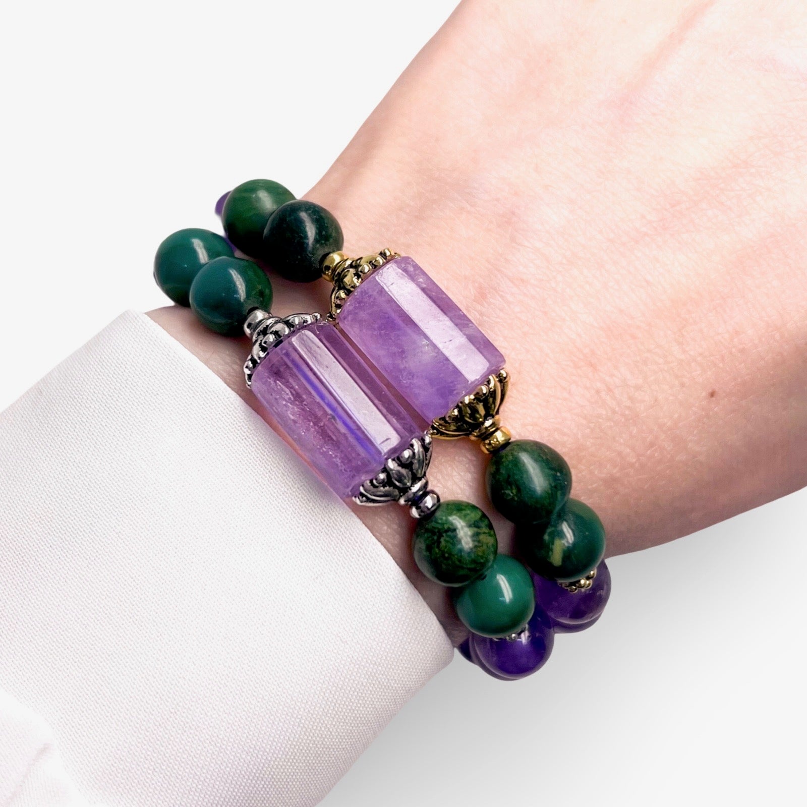 Good Luck and Protection | Amethyst and Jade Lotus Bracelet