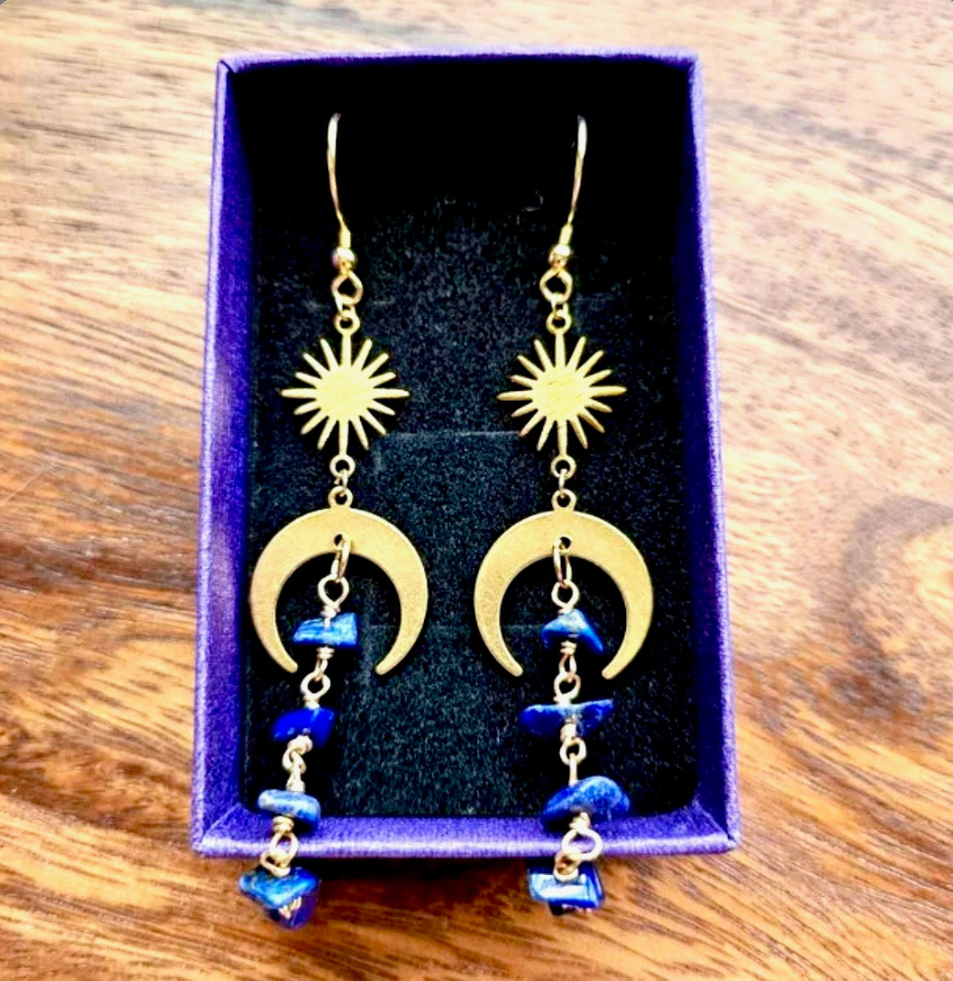 I've always loved long earrings especially with astronomical designs. Good quality, lightweight . The tanzanites were my choice for healing grief. Thank you, Rossana, for the kind words.