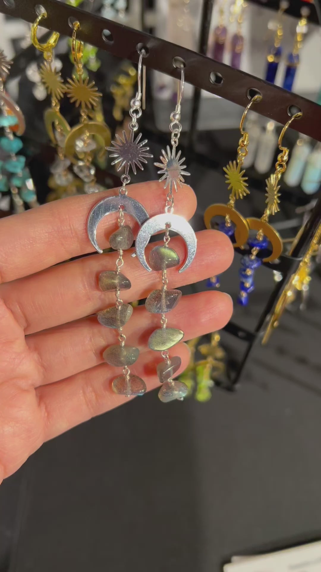 These earrings are inspired by romantic moon and star. We crafted with labradorite to make them magical!
